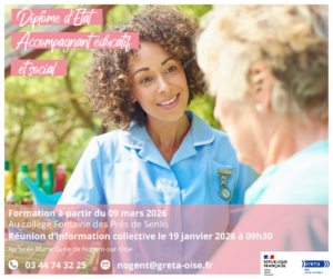 Notre agence de Nogent-sur-Oise est heureuse de vous proposer une session de formation au DEAES !